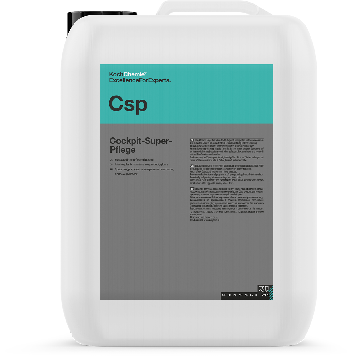 Koch Chemie Cockpit Super Pflege ist das ideale Pflegemittel für Kunststoffoberflächen im Autoinnenraum. Das Besondere an diesem Produkt ist sein glänzendes Finish, das den Innenraum Ihres Fahrzeugs strahlen lässt und so ein perfektes Neuwagenfinish hinterlässt.