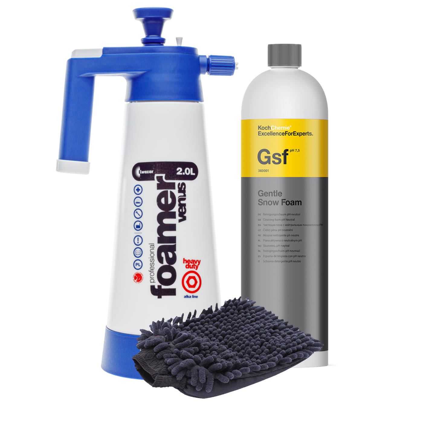 Jetzt im Set mit dem praktischen Koch Chemie DPZ Venus Super Foamer und einem Mikrofaser Waschhandschuh, für die ultimative Reinigung.