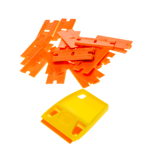 Für das Entfernen von hartnäckigen und stark anhaftenden Kleberesten auf der Frontscheibe empfehlen wir die Verwendung unseres Glasschabers mit Metallklingen.
