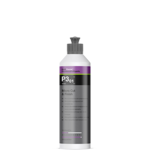 Wie alle Koch Chemie Polituren ist auch die Micro Cut & Finish P3.01 extrem staubarm. Als Politur mit Finish-Komponenten enthält sie nicht-flu¨chtige Silicone.