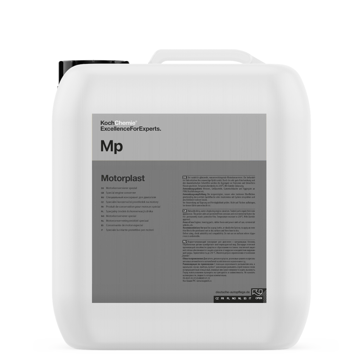 Koch Chemie Motorplast ist ein innovativer Konservierer, welcher speziell für den Schutz von Kunststoffen und Gummiteilen im heißen Motorraum entwickelt wurde. Es handelt sich um eine wasserabweisende Schutzschicht, die sich über Motoren, Gehäuseteile, Gummischläuche und Aggregate legt. Durch den Einsatz von Motorplast werden diese Teile vor Witterungseinflüssen, UV-Strahlung und Verschmutzungen geschützt. Das Ergebnis ist eine längere Lebensdauer der Kunststoffteile sowie ein neuwertiges Aussehen aller behandelten Teile.