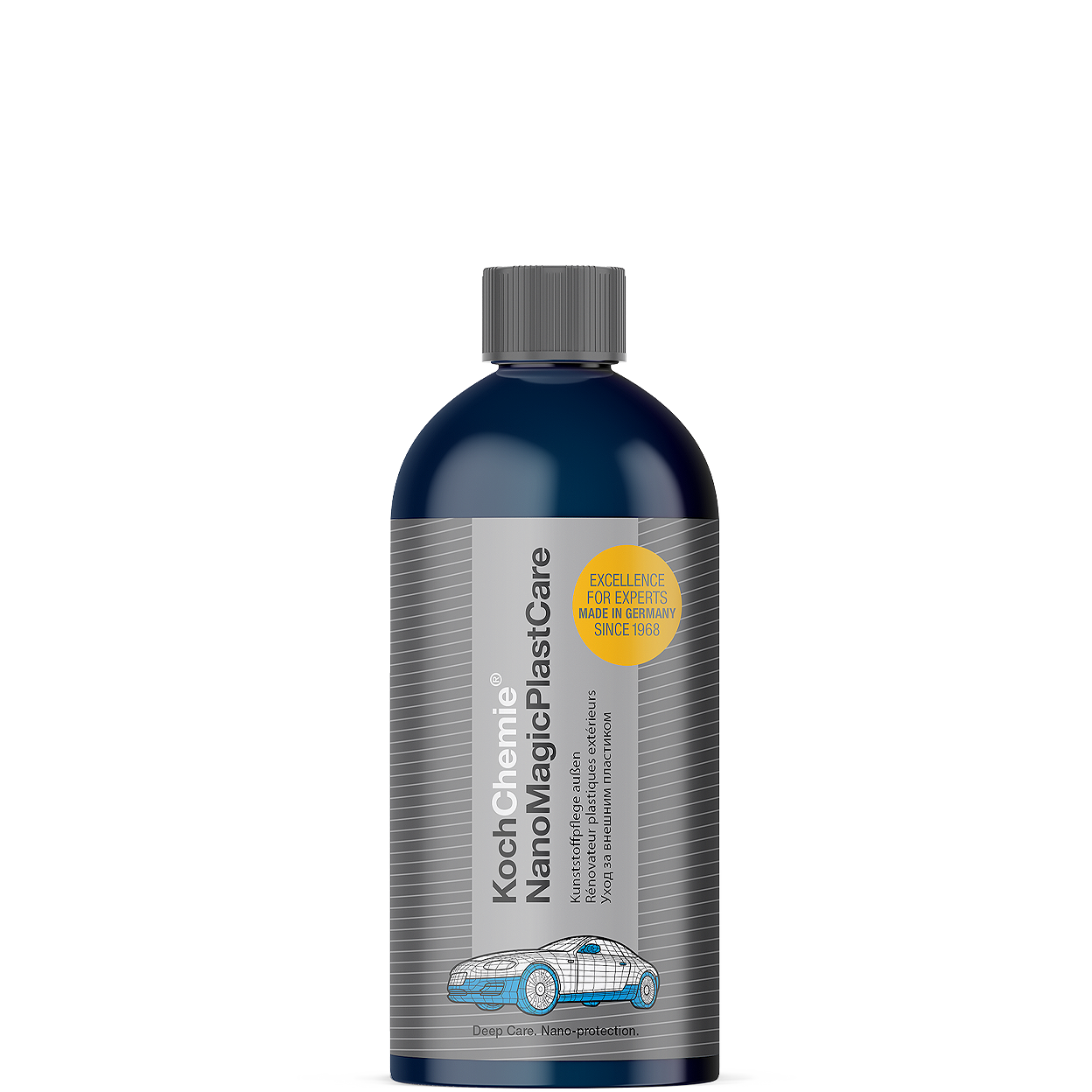 NanoMagicPlastCare ist das Premium-Produkt von Koch Chemie für eine UV-stabile Versieglung der nicht lackierten Kunststoffe Außenbereich. Es zieht in den Oberfläche von Stoßstangen, Stoßleisten und Gummileisten ein und verbindet sich mit diesem. So erhält selbst schon verblichener Kunststoff wieder seine natürliche tief schwarze Farbe zurück.