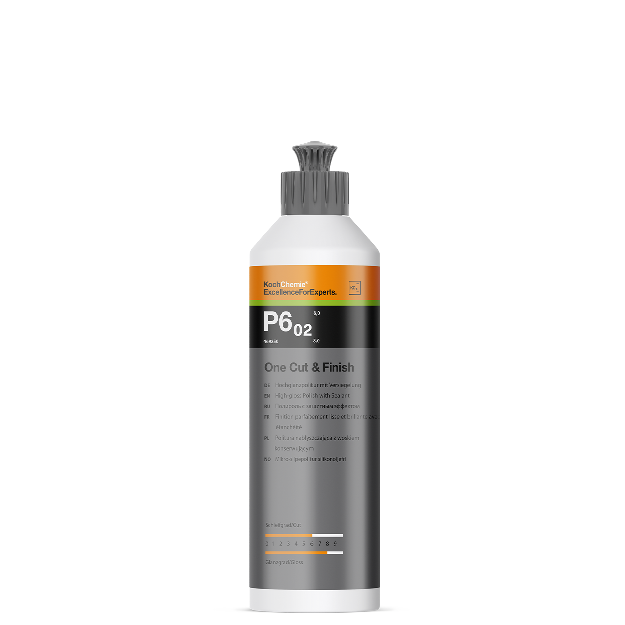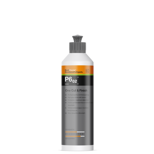 Die neue Koch Chemie One Cut & Finish P6.02 ist eine maschinelle Politur, die entwickelt wurde, um hartnäckige Polierschleier, Hologramme sowie Kratzer und Anschliffe ab Körnung P 2000 dauerhaft zu entfernen. Gleichzeitig verleiht sie der Oberfläche einen effektiven Versiegelungseffekt. Dank der gleichmäßigen Schleifkörner erzielen Sie ein strahlendes und lang anhaltendes Hochglanzfinish.