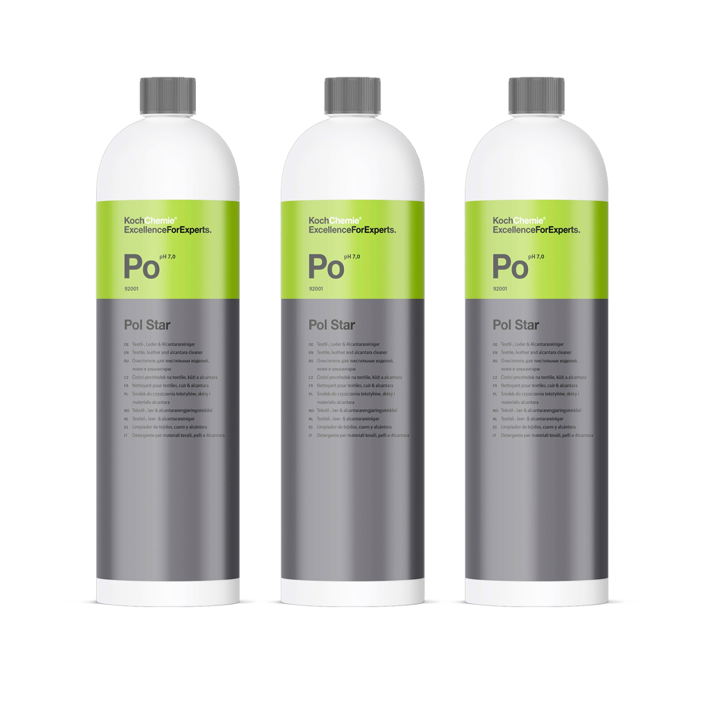 Koch Chemie Pol Star ist der Reiniger für alle textilen Oberflächen im Auto oder auch zu Hause und im gewerblichen Bereich. Mit diesem Spezialreiniger werden Leder, Alcantara und Textilien wie Polster und Teppiche wieder Poren- und Fasertief gereinigt.