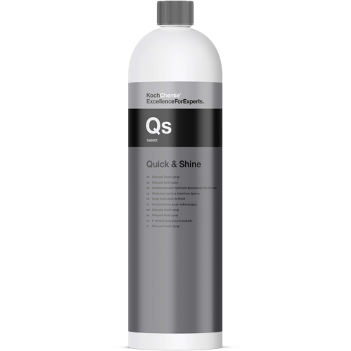 Koch Chemie Quick and Shine ist der ultimative Schnellreiniger (Detailer) für alle glatten dun lackierten Oberflächen, wie zum Beispiel Fahrzeuglacke, Glas, Kunststoffteile, Cockpit, Möbel, Edelstahl und viele mehr.