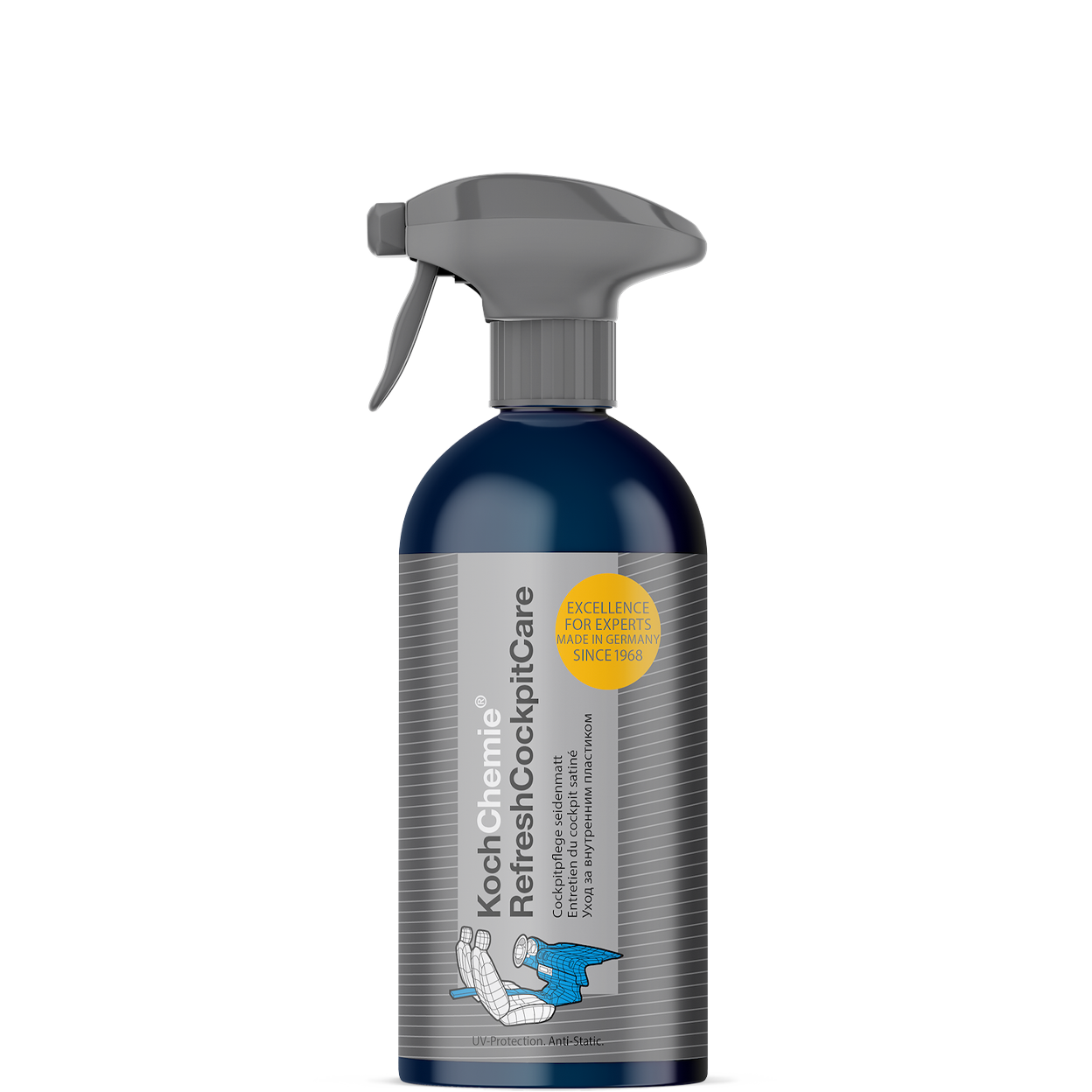 Mit RefreshCockpitCare erhalten neben dem Finish auch eine antistatische Oberfläche welche die Oberfläche vor schneller Neuverschmutzung schützt. Dazu sind UV-Schutz-Additive enthalten, diese verhindern dass die Oberflächen durch die Sonnenbestrahlung ausbleichen.
